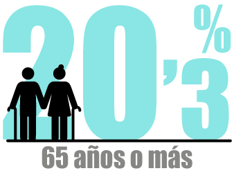 En España, un 20,3 % son personas de 65 años o más. (FUENTE: INE, 2023)