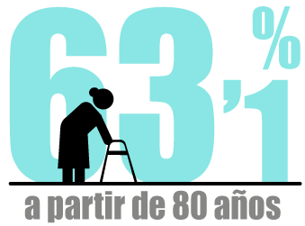 A partir de los 80 años, el porcentaje de mujeres alcanza el 63,1 %. (FUENTE: INE, 2023)